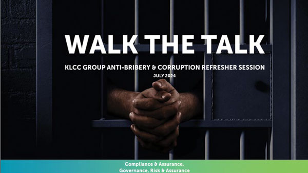 KLCCP Stapled Group’s continuous efforts to manage our integrity risk reflect a commitment to conducting business with integrity in support of the Group’s zero tolerance against all forms of bribery and corruption.