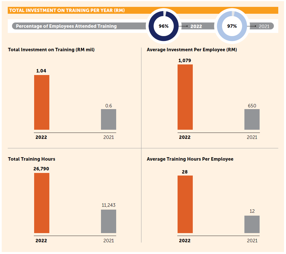 Additionally, the Directors participated in the Mandatory Onboarding Programme on Sustainability as per Bursa Malaysia’s Listing Requirements which was designed to enhance their capability to address sustainability considerations effectively.